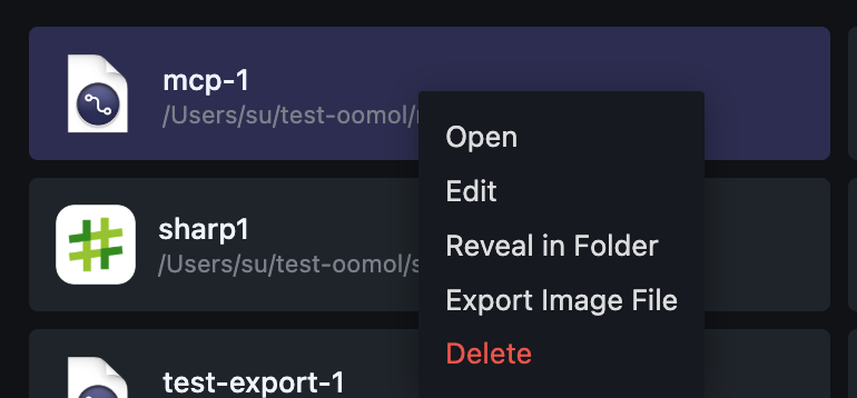 On the Home page, you can select the project you want to export, right-click, and choose the "Export Image File" option.
