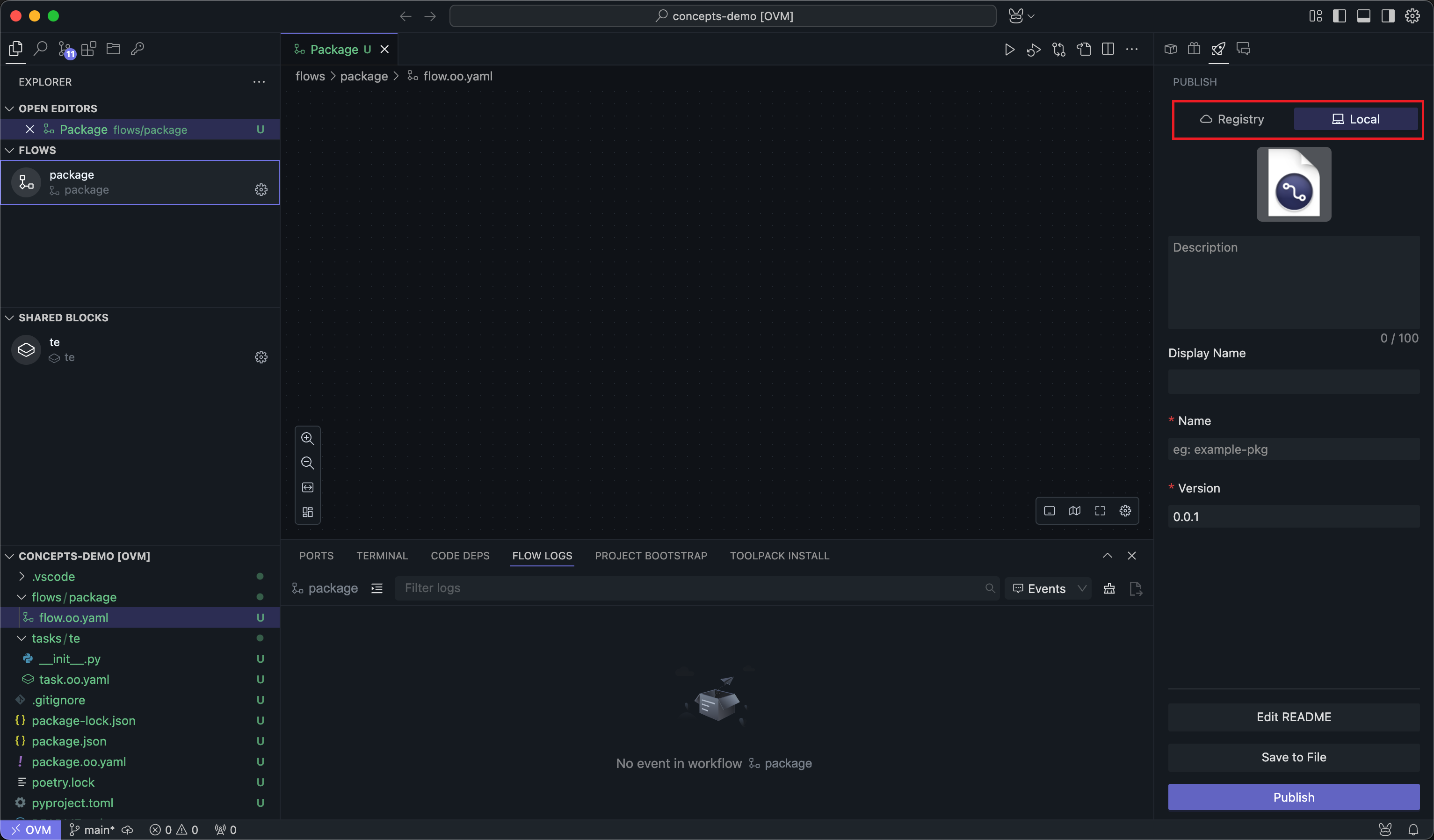 When the Flows or Blocks you develop can be reused by other projects or users, you can choose to publish this content as a package.